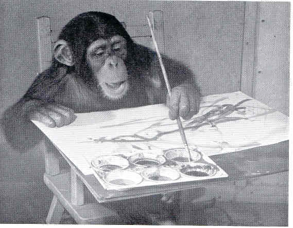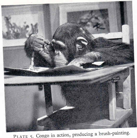 Los primeros estudios del arte de los primates no-humanos datan de principios del siglo XX, pero no fue hasta los años 50 que empezaron a despertar mayor interés al aparecer en la televisión americana la chimpancé Baltimore Betsy con sus "finger paintings". Al otro lado del Atlántico, y con la intervención de Desmond Morris, el chimpancé Congo hizo su aparición en la TV británica y atrajo una audiencia de 3 millones de espectadores. Esto dio lugar al año siguiente a una exposición conjunta en Londres de las obras de los dos chimpancés.
