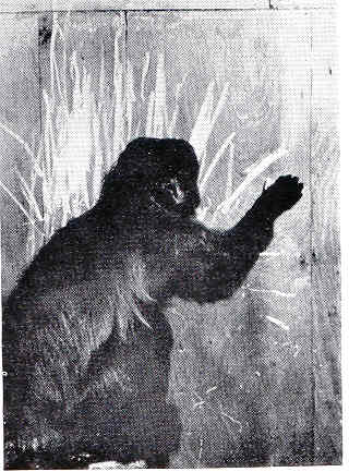 El único dibujo disponible de la bonobo adulta Dzeeta de Planckendael, Bélgica hecho entre 1993 y 1994, muestra un control caligráfico y una capacidad de exploración del medio encontrados pocas veces en los chimpancés (Fig. 13).