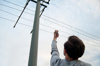 como una máquina de café, un teléfono móvil o de un cable elevado manteniendo el cosechador directamente dentro del campo electromagnético, cuya fuerza es indicada por un LED sobre el cosechador.